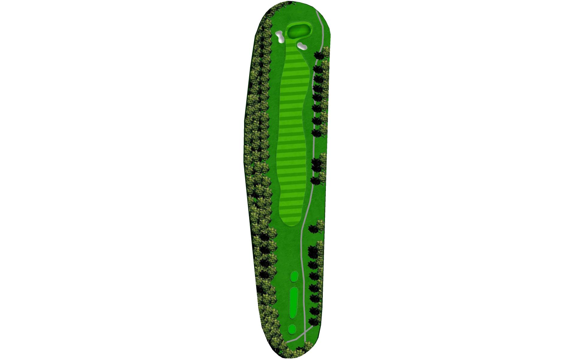 Straight par 4 with tree protecting the left side of the fairway that could cut off access to the green.