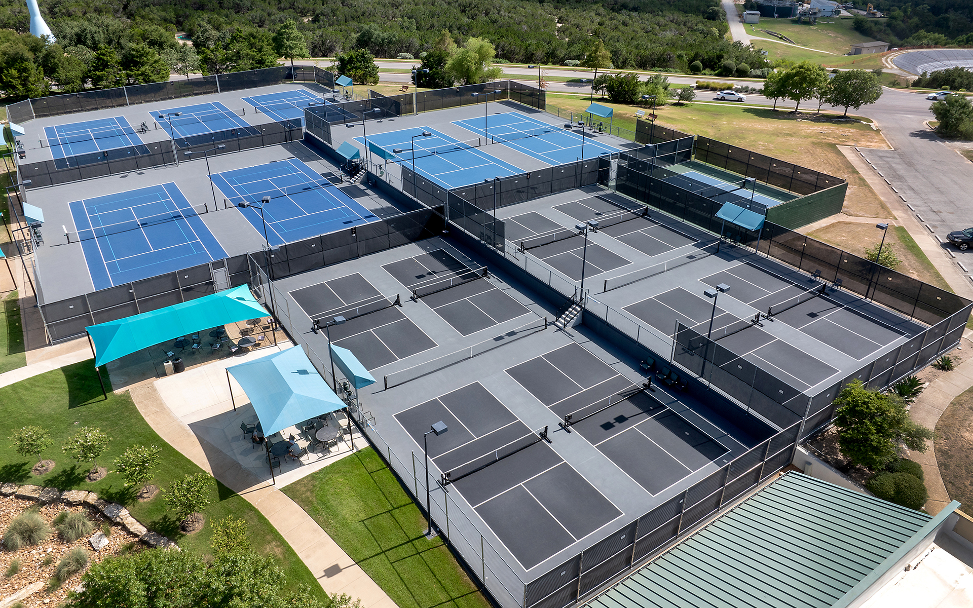 We offer 13 outdoor tennis courts, 2 indoor tennis courts, and 9 pickleball courts, with access to competitive leagues like USTA and daily mixers.